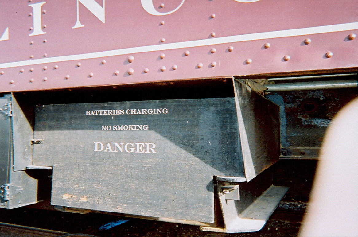 The lights and fans still operate from a 3000 pound, 36 volt battery so the guests have lights and ventilation even when not connected to power from the station, train, or generator.